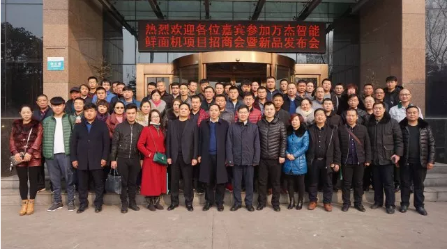 2017年12月29日,萬杰智能鮮面機第三期全國招商會和中型生產線新品發布會同時在萬杰智能總部召開。在新的一年即將到來之際,眾多經銷商和糧油界的朋友們寄托新的希望,齊聚萬杰展望未來,共謀未來發展新商機。