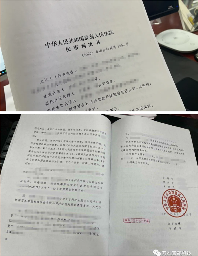 最高人民法院終審判決:北京某公司侵權(quán)萬杰智能鮮面機事實成立!