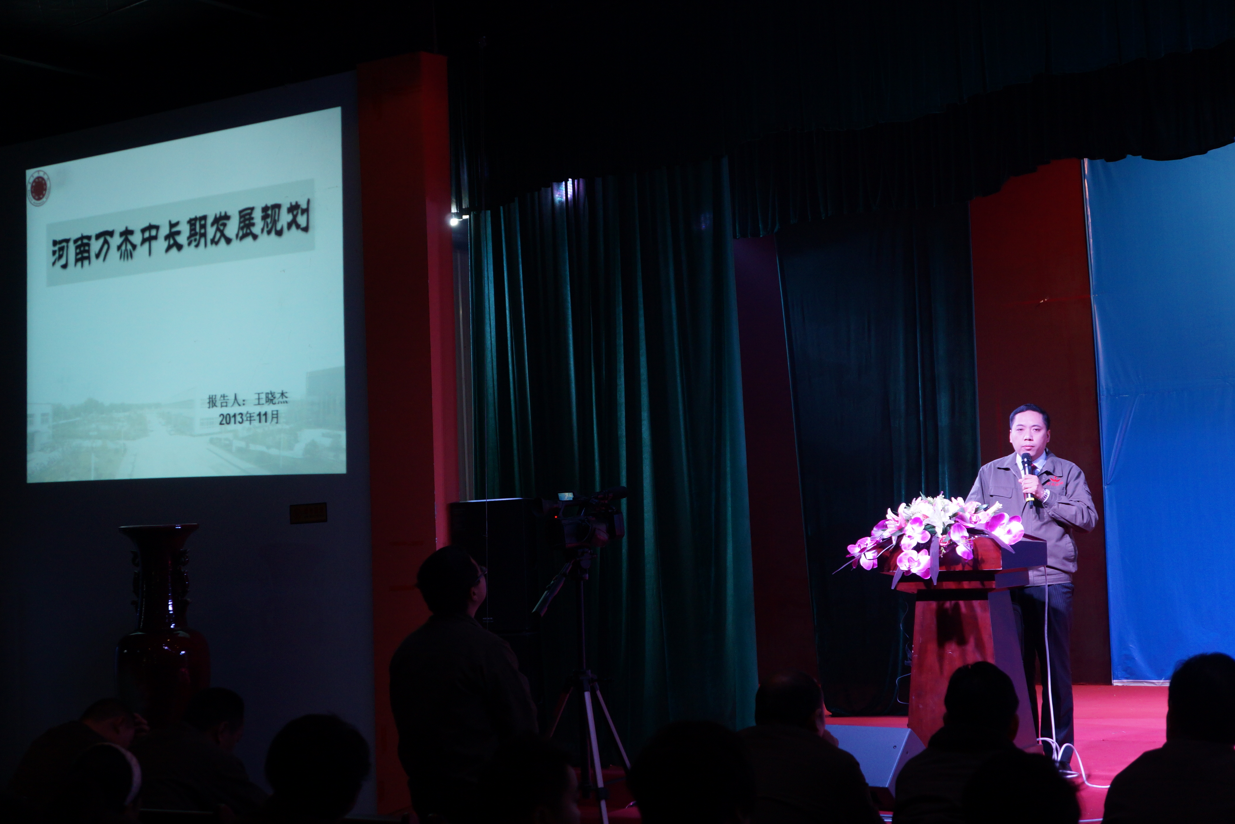 2013年126日,在二樓大禮堂內,公司召開了全廠職工大會,董事長王曉杰向全體萬杰家人宣導了《河南萬杰中長期戰略規劃》。董事長王曉杰指出:我們萬杰人要再接再厲,抓好當前經濟運營,確保目標任務順利實現,并要著眼長遠,規劃中長期戰略藍圖,為未來發展奠定基礎。
