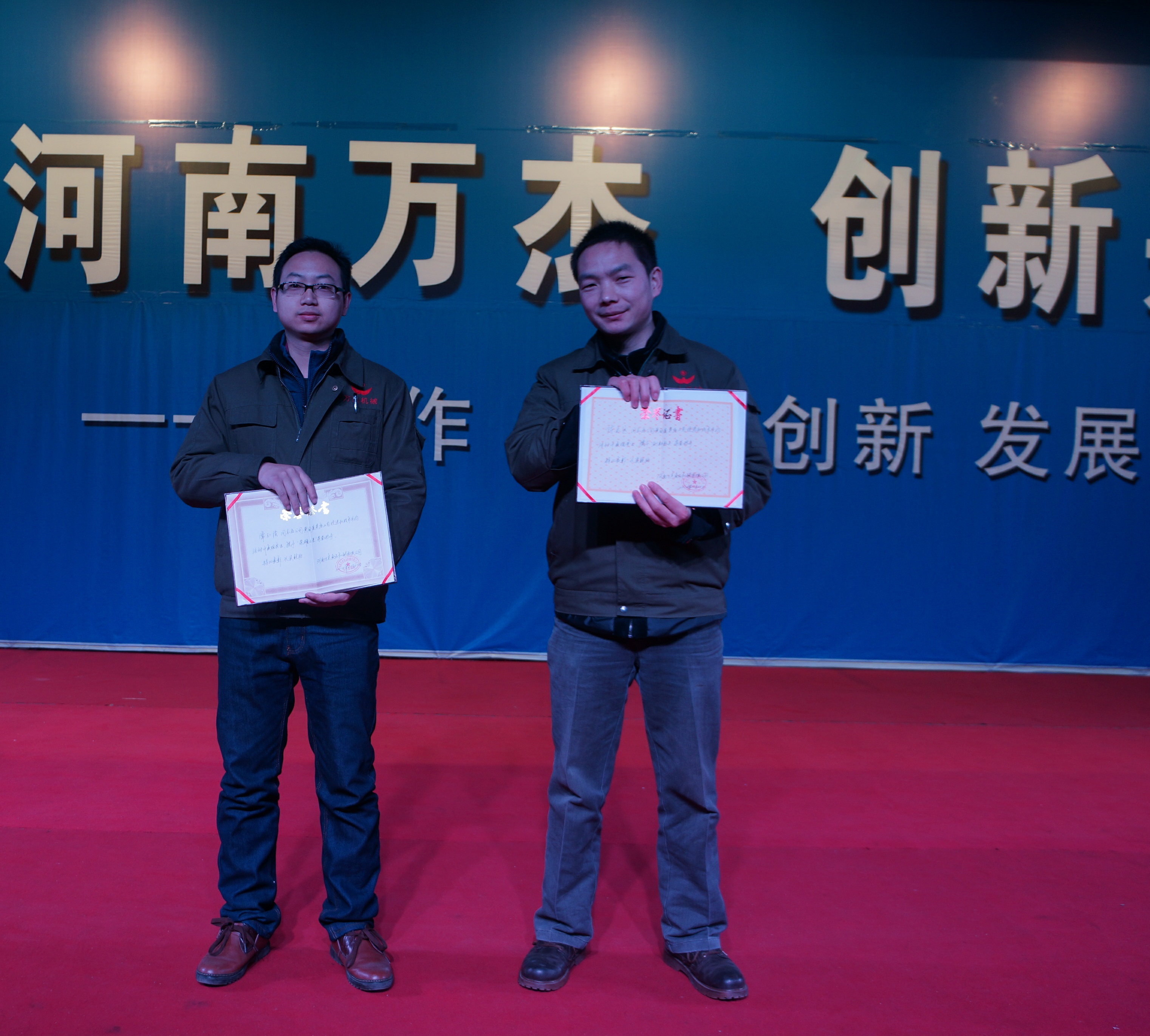 2013年12月30日,公司在二樓演播大廳再次召開了表彰大會,授予品保部陳志遠同志“創(chuàng)新標兵”榮譽稱號、授予品保部常玉強同志“榮耀之星”榮譽稱號,對黃金層蒸房改善小組獎勵現(xiàn)金1000元。董事長親自為其頒發(fā)榮譽證書和獎金。