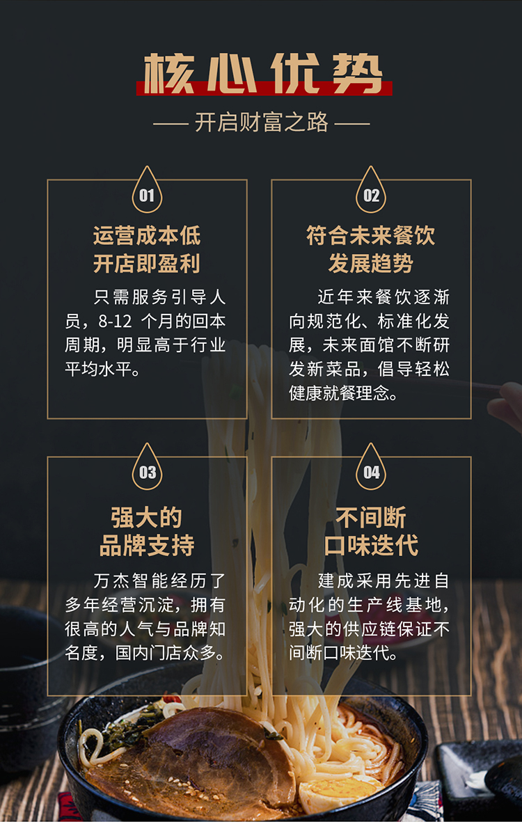 - 可以替代原有水餃、面條檔口,節(jié)省2-5名人工;